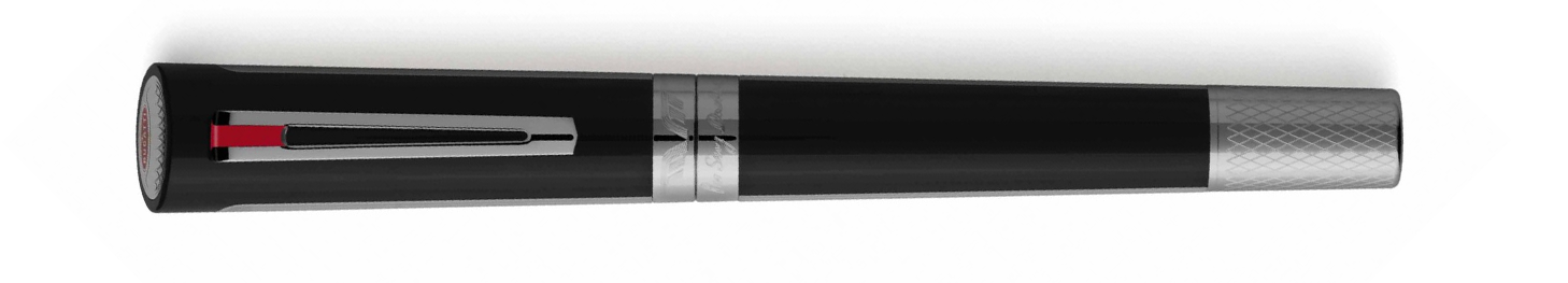 Bugatti Pur Sang Duotone pens are offered as fountain pens, rollerballs, ballpoint pens and mechanical pencils. For the fountain pen, an 18k gold nib is fitted, also engraved with the “Dynamic Quilting” pattern and featuring the famous Bugatti logo. The oval logo, known as “macaron” in French, also appears in full colour on the top of the cap of every pen, while the shape of the Veyron’s headlights inspired the engraving around the cap ring.