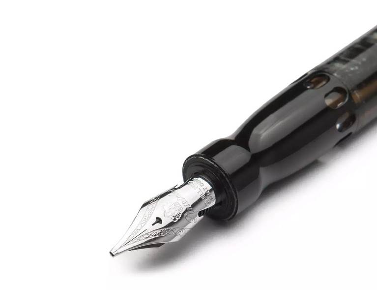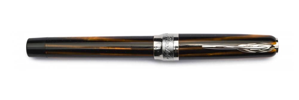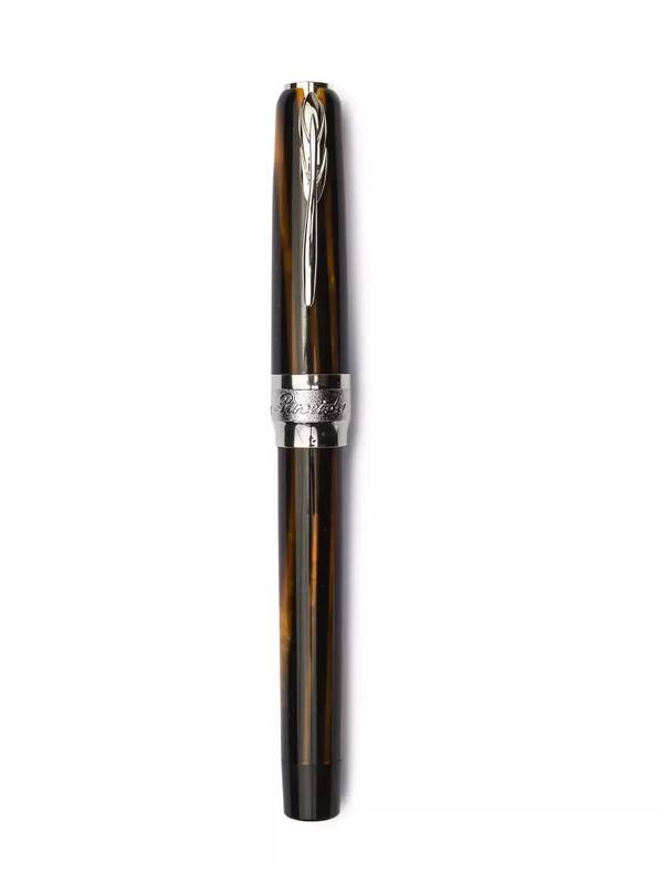 The unique design of the Limited Edition Arco fountain pen is a stratification of layers of materials, creating a design with colors that were popular in the ‘30s. After intensive research, Pineder has been able to replicate these famed hues with several layers of resin, creating a visual effect that mimics celluloid—a once popular material in pen manufacturing. This new resin is more durable and does not face the crystallization issues of celluloid, making the Arco an amazing upgrade. This fine writing instrument is complemented by 14 kt Quill Nib, a twist magnetic cap lock, and a piston filling mechanism. There are only 888 Arco fountain pens availa
