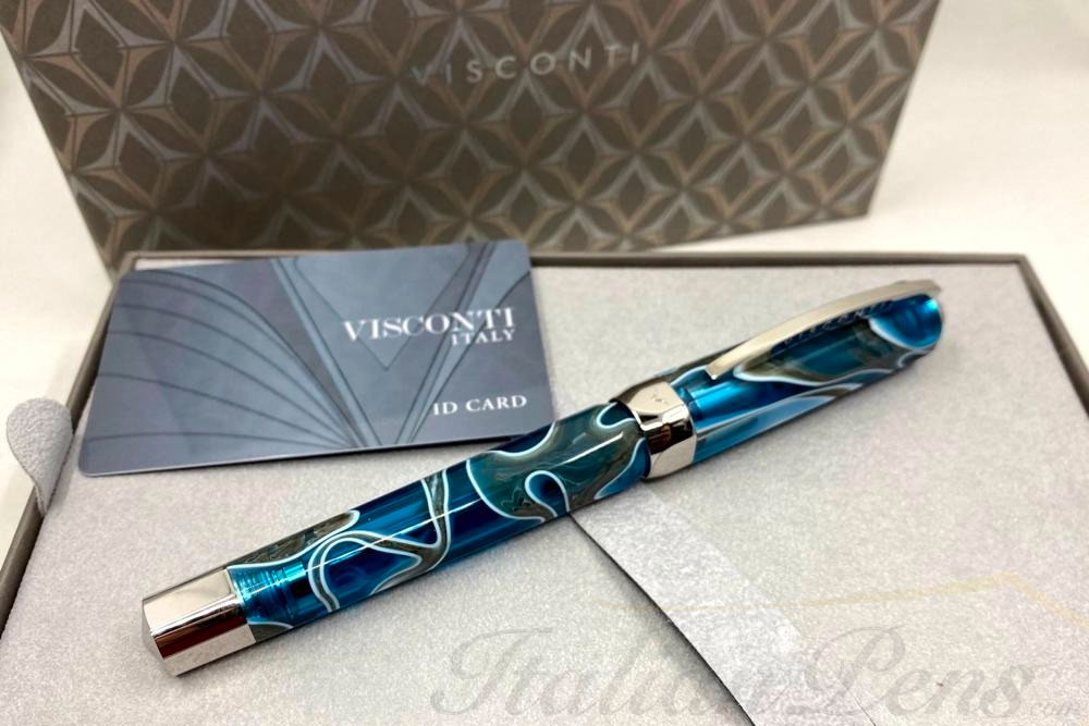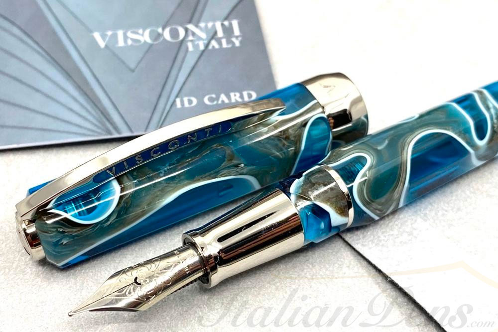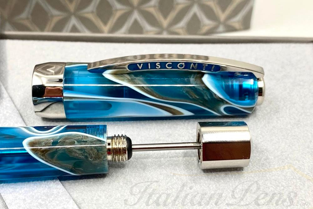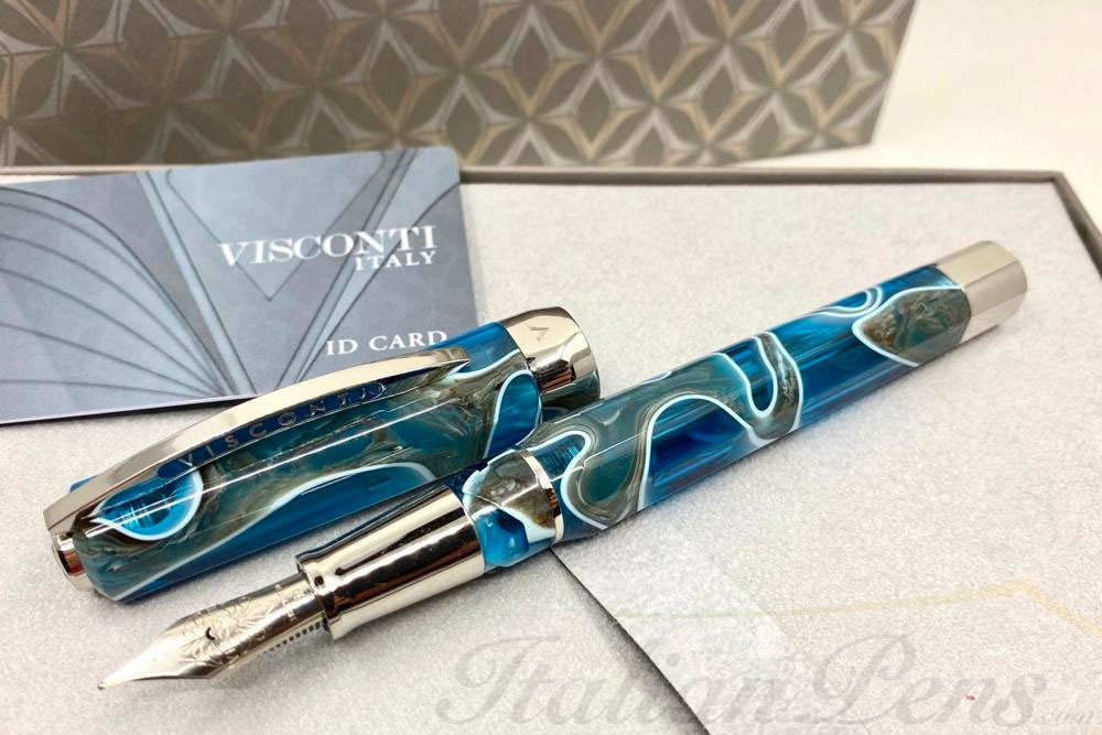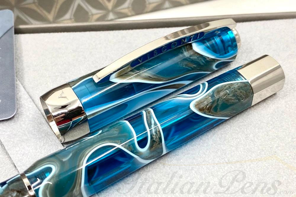 The Opera Master 'Polynesia' transports the collector to the exotic Polynesian islands famous for its dazzling beaches, serene blue seas, and coral reefs shimmering in clear waters. This is an exceptional fountain pen featuring the many patented innovations favored and sought out by Visconti collectors: