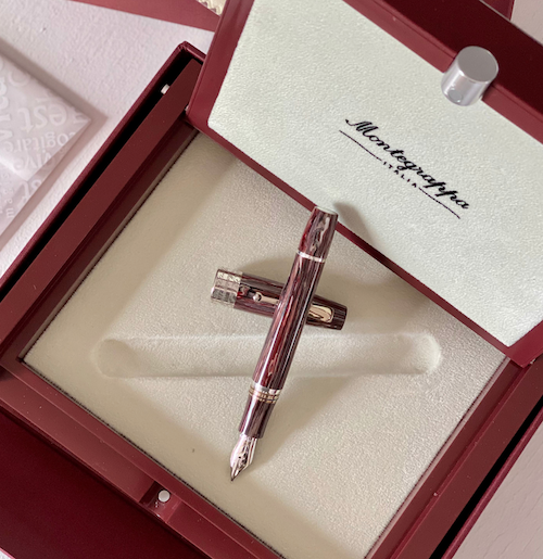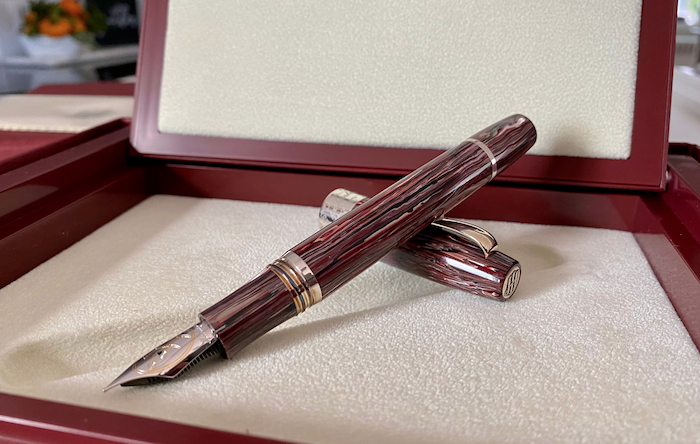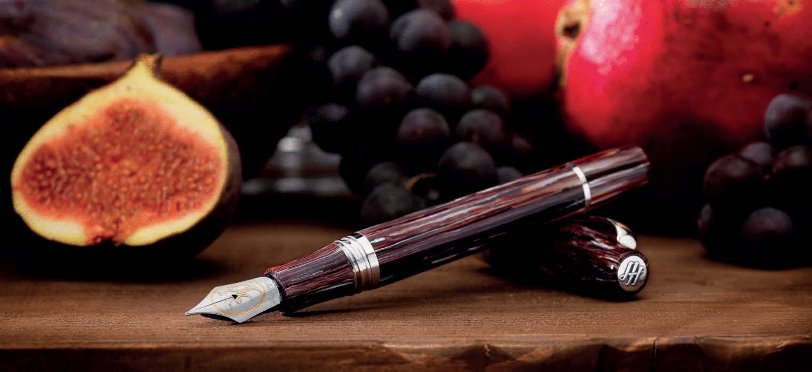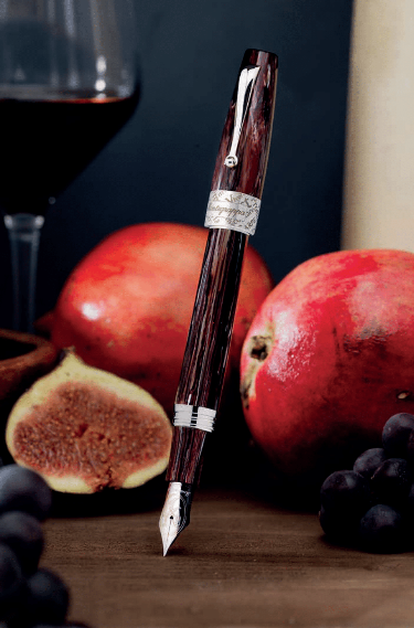 Montegrappite artisanal resin. The organic, burgundy veins of Vinum