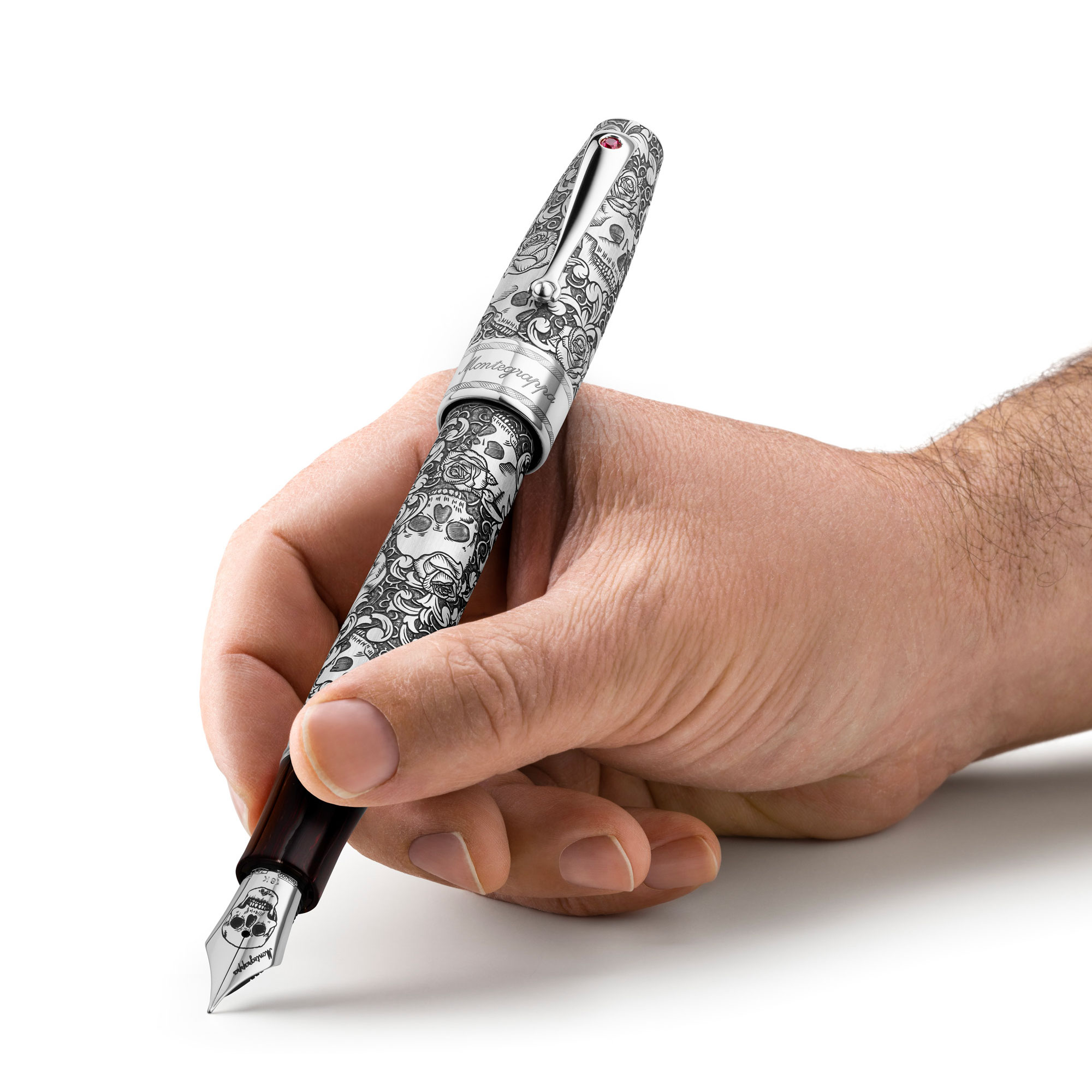 Skulls & Roses is available in limited editions of 333 fountain pens and rollerballs and is delivered in a walnut case with a custom plaque and certificate.