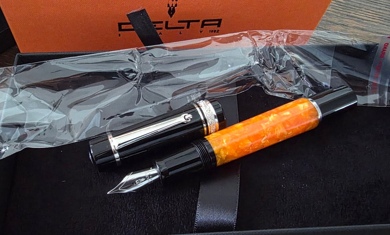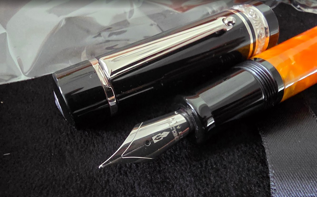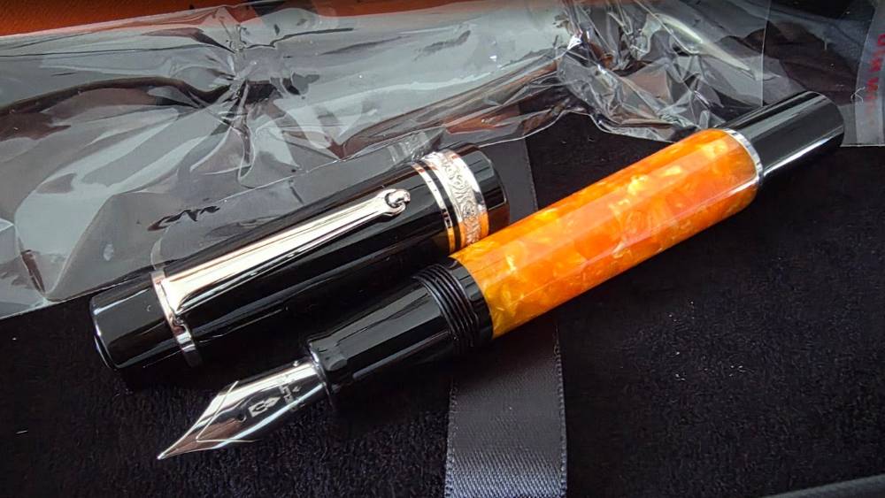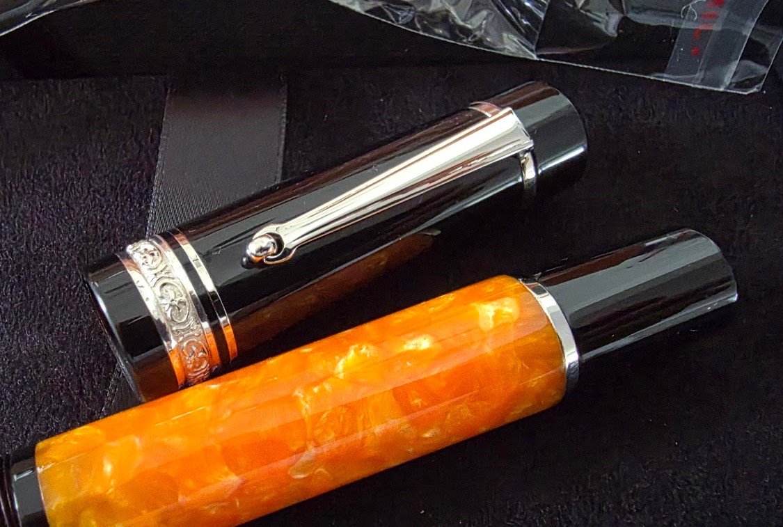 an acrylic resin barrel cast in a brilliant tiger orange and a
