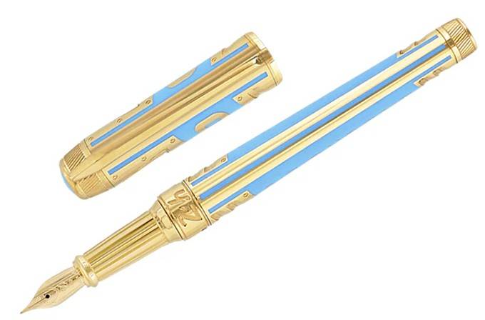 limited-edition writing set is presented in a remarkable blue and gold