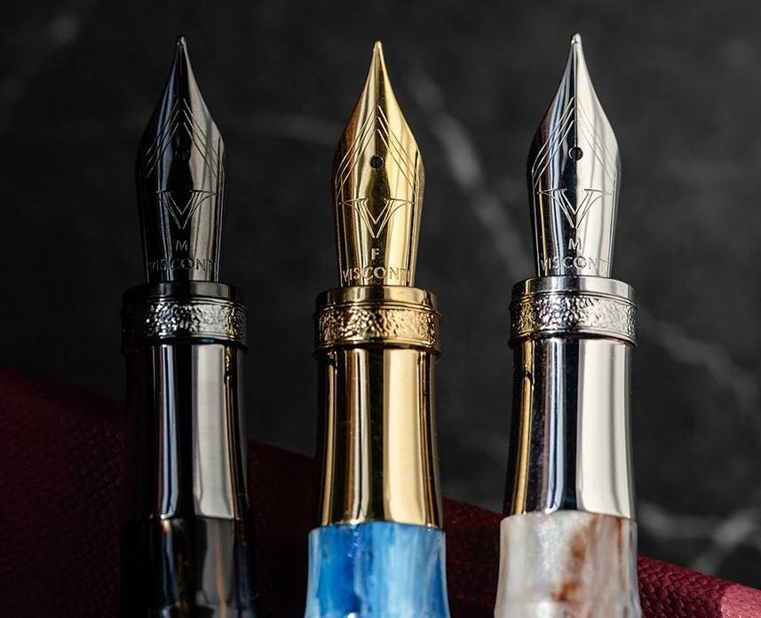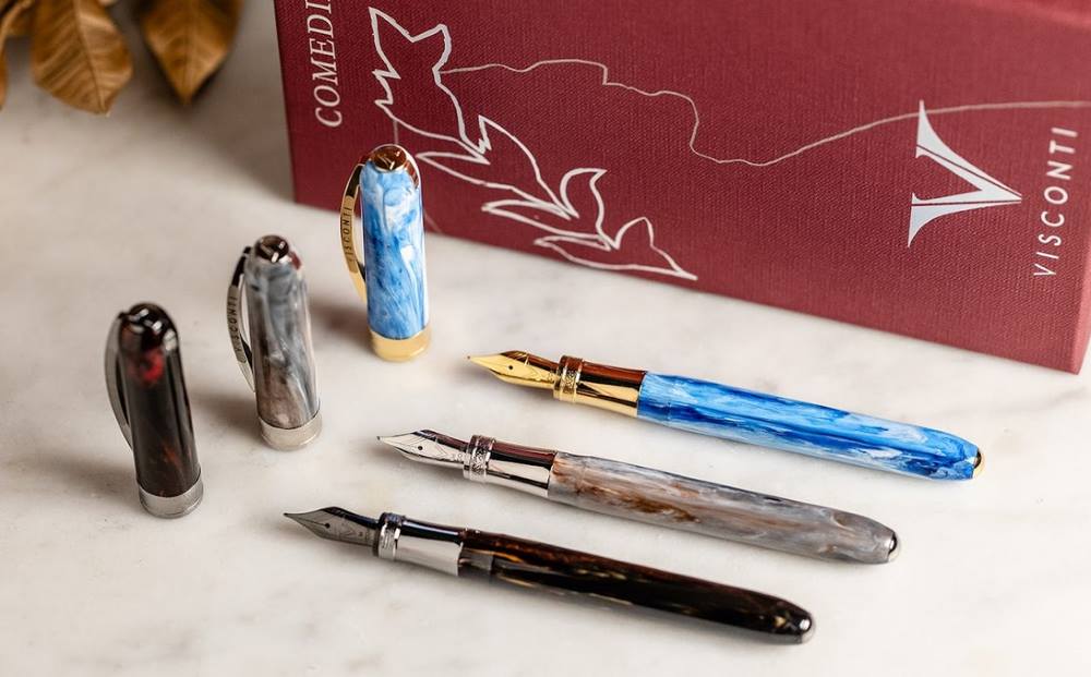 The Comedia collection features Visconti's large steel nib that is plated to match the trims: