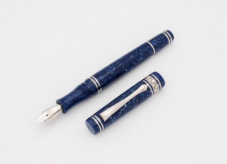 celluloid, a material renowned for its exquisite beauty and depth. The celluloid body of the pen exudes a