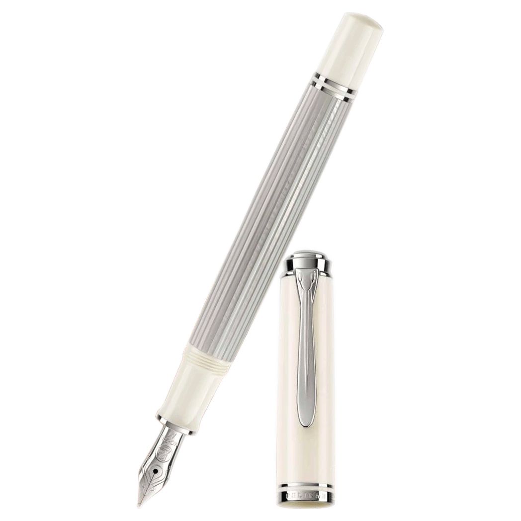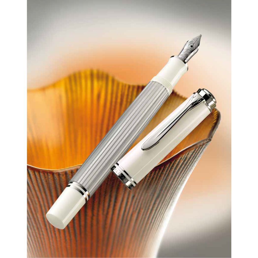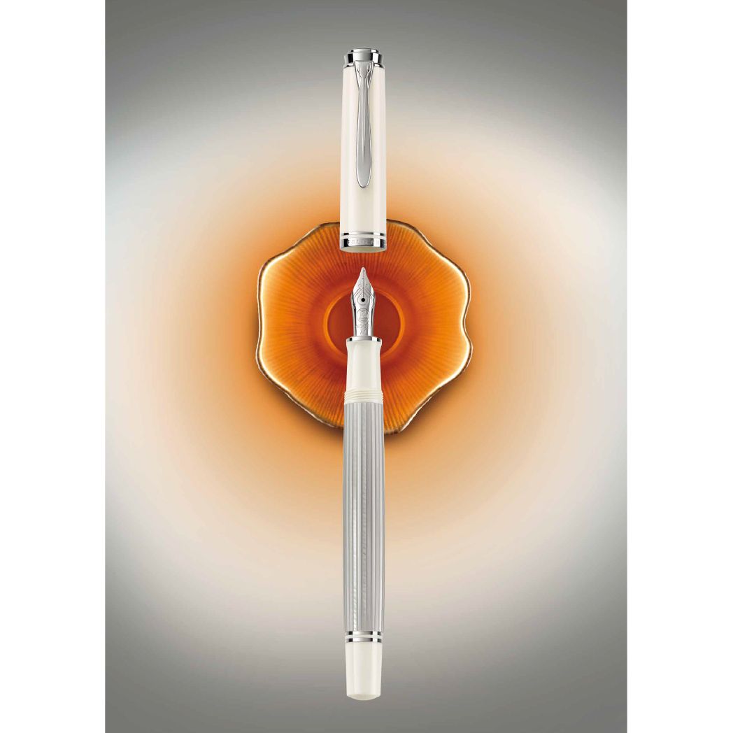 Every single writing instrument is mounted by hand and carefully checked to fulfill the strictest quality criteria. This series is delivered with a practical folding box. Additional gift boxes (G15) can be ordered separately. We also recommend our Edelstein Ink of the year 2020 Moonstone, a matching color. This new series in the very popular size 405 will be available as piston fountain pen and ballpoint pen with push mechanisim. All models of the series Souverän 405 silver-white will be part of the standard collection starting November 2020.